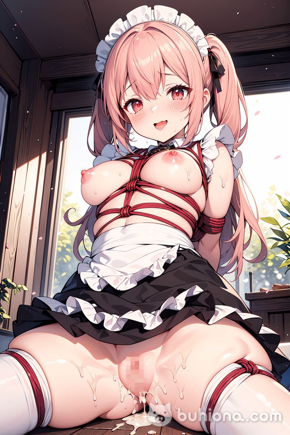 『お仕置き』という名の『緊縛プレイ』…! あられもなくはだけたメイド服に容赦なく食い込む赤ロープが彼女たちの羞恥心を掻き立てる![35枚]